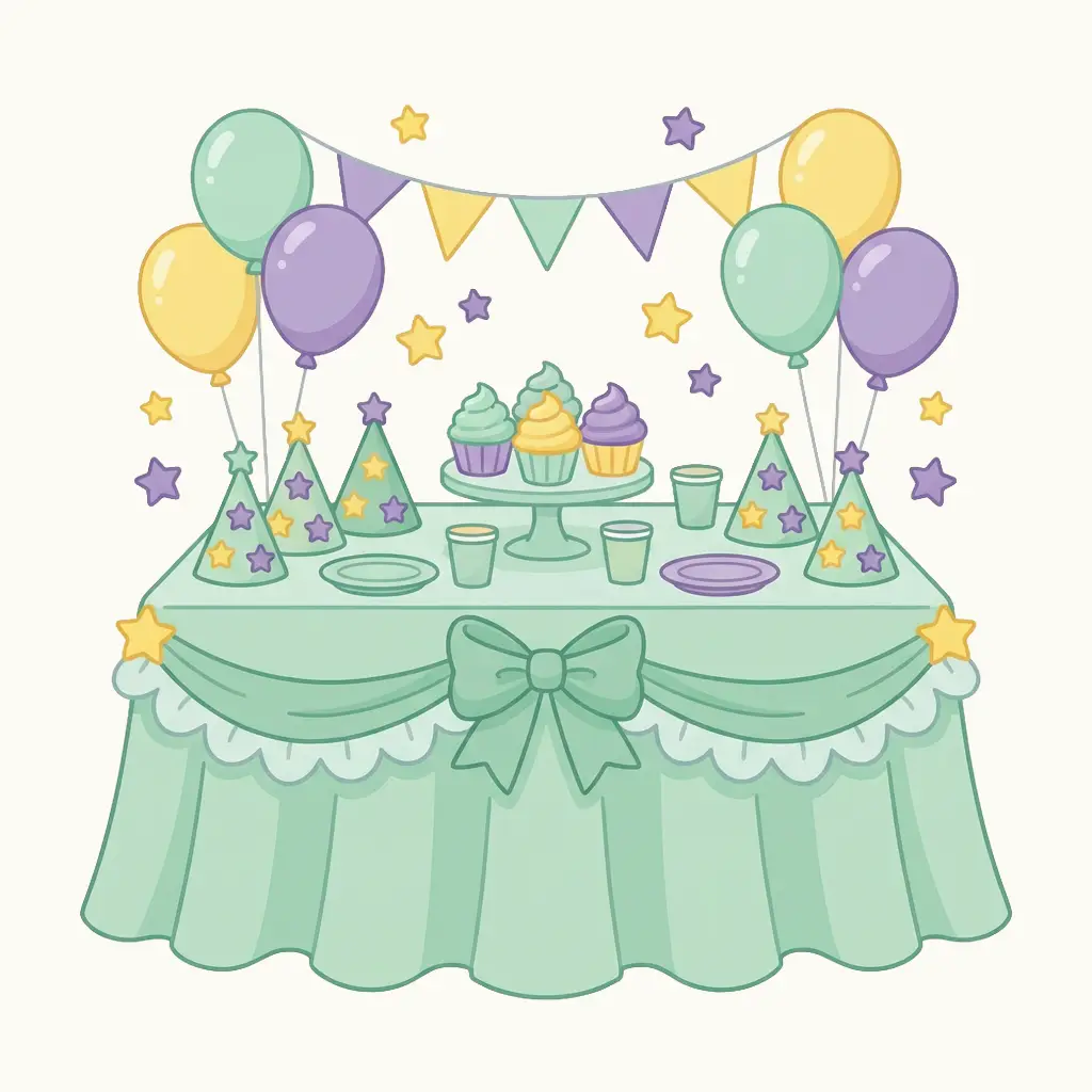 Bij een feestje hoort natuurlijk ook versiering! Daarom bij elke kist versiering in thema, zoals slingers en tafelversiering.